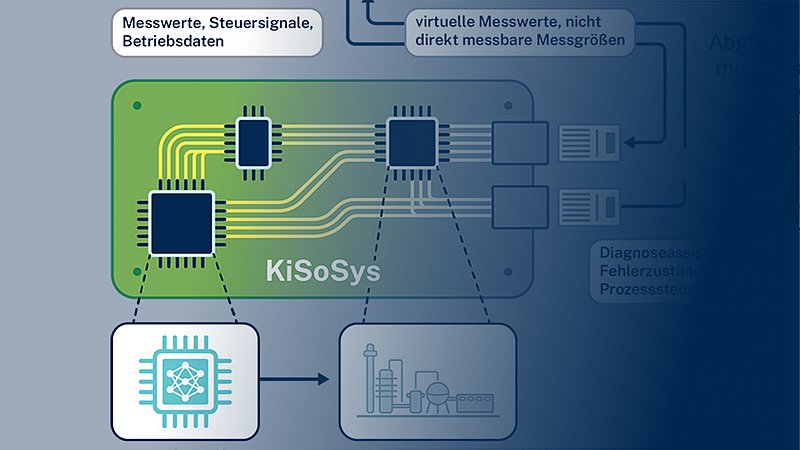 Das KISoSys-System wird in das Automatisierungssystem integriert und erhält von diesem live Steuer- und Messsignale aus der Anlage. Auf Basis von Messwerten und Steuersignalen wird mithilfe von maschinellen Lernalgorithmen ein digitaler Zwilling der Anlage generiert. Dieser digitale Zwilling wird parallel zum Anlagenbetrieb simuliert. Durch Vergleich zwischen der realen Anlage und dem digitalen Zwilling können ungewöhnliche und kritische Anlagenzustände erkannt werden und an die Steuerung zurückgemeldet werden.