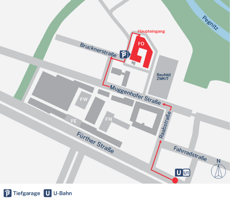 Use public transport line U1 in the direction of Fürth; to reach the Ohm Innovation Center exit the U-bahn at the Eberahardshof stop and follow the signs to exit the station at Raabstraße.