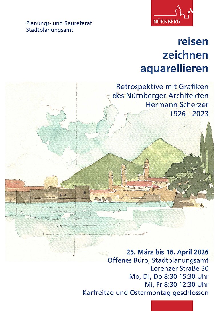 Die Ausstellung wird am Freitag, den 9. Januar 2026 um 16:00 Uhr eröffnet und vom 12.01. bis 29.01.2026 im Offenen Büro des Stadtplanungsamtes, Lorenzer Straße 30, 90402 Nürnberg, zu sehen.