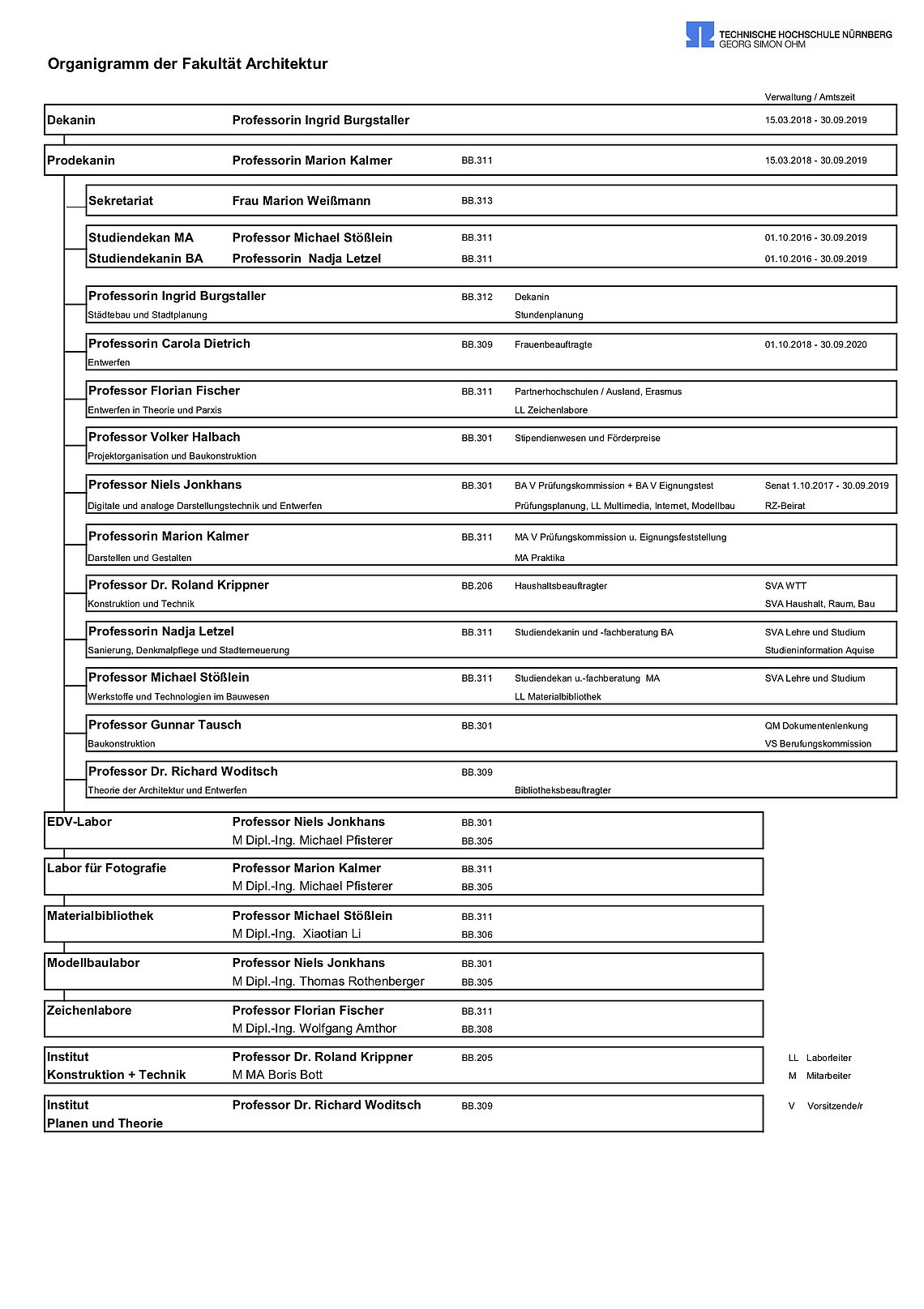 Organigramm der Fakultät Architektur