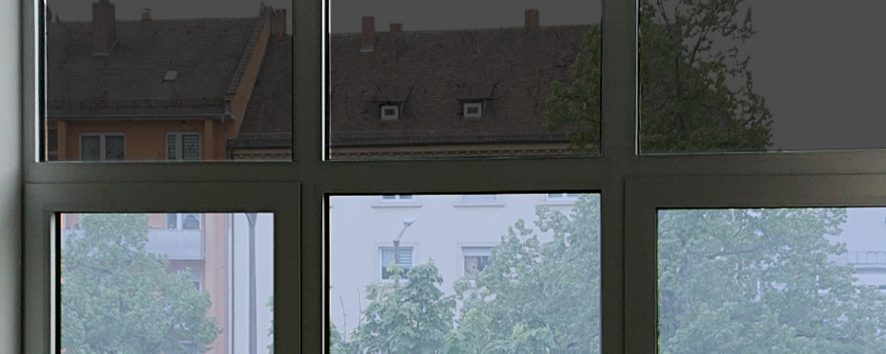 Prototyp einer (elektrochromen) OPV (Organische Photovoltaik)-Folie in verglastem Fassadenbereich am Energie Campus Nürnberg (EnCN) (Quelle: FAU/AD)