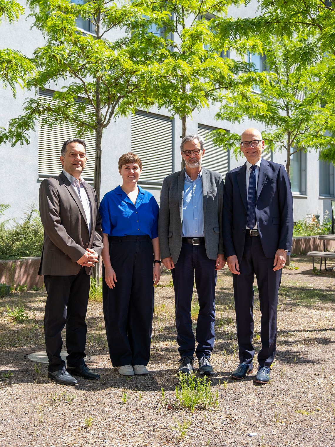 Gemeinsamer Projektstart der Ohm und der Bürgerstiftung Nürnberg - Personen im Bild (von links): Projektteam Ohm, Theophil Graband (Vorstandsvorsitzender Bürgerstiftung Nürnberg), Prof. Dr. Niels Oberbeck (Ohm-Präsident)