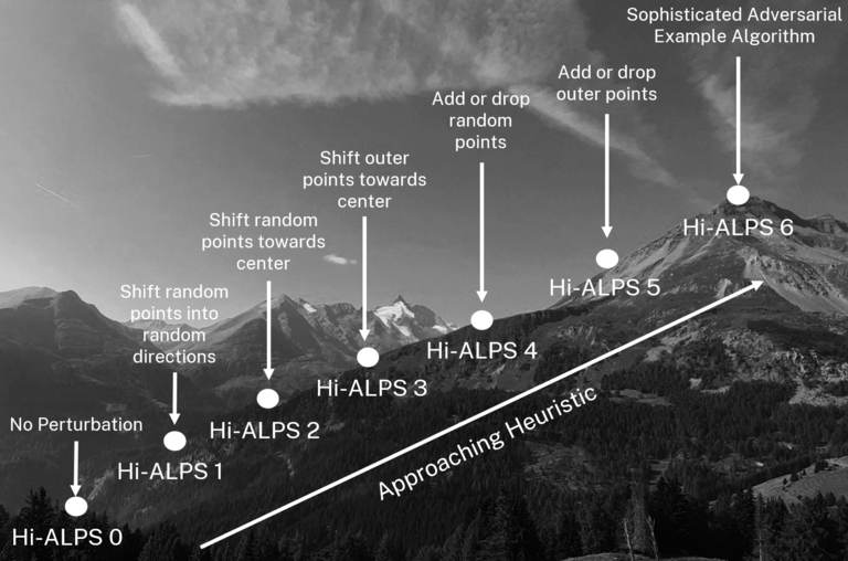 Eine spezielle Art von Störungen sind Adversarial Examples, welche kleinen Veränderungen der Eingabedaten entsprechen, welche die Vorhersage von Objekterkennern verändern Diese Manipulationen werden häufig mithilfe spezialisierter Algorithmen erzeugt und können teilweise internes Wissen über das Zielsystem ausnutzen, wodurch klassische Objekterkennungssysteme kaum in der Lage sind, diesen Angriffen standzuhalten. Das Manipulationsstufen System Hi-ALPS (siehe unten) dient zur Quantifizierung der Robustheit von LiDAR-basierten Objekterkennern. Mit steigender Manipulationsstufe werden zunehmend „cleverere“ Störungen angewendet, wodurch höhere Robustheitsanforderungen an das jeweilige System gestellt werden. Der bisherige Ansatz beschränkt sich jedoch ausschließlich auf LiDAR-Daten und berücksichtigt keine kamerabasierten Wahrnehmungssysteme.