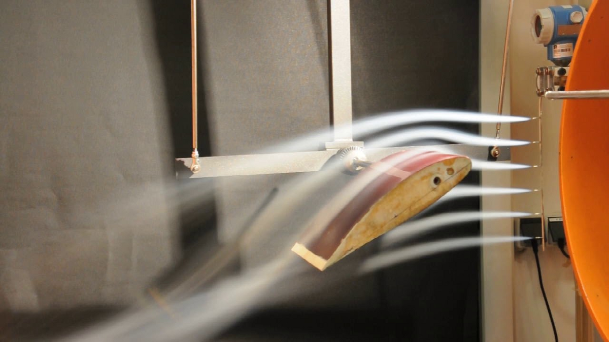 Tragflügelprofil im Windkanal: Visualisierung der Strömung mit einer Nebelsonde