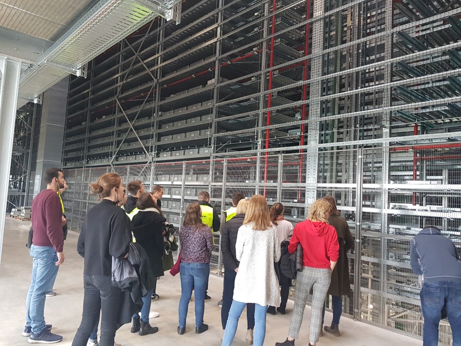 In einem 3-stündigen Rundgang, geleitet durch Alexander Schell, verantwortlich für Bauprojekte bei Thomann, erhielten die Studierenden einen umfangreichen Einblick in die Logistikabwicklung des Onlinegeschäftes, vom Eingang des Kundenauftrages bis zur Versandbereitstellung. Neben dem Container-Pufferlager und dem Wareneingang, lag der Fokus der Besichtigung insbesondere auf dem neuen Versandcenter, das eine minimale Durchlaufzeit eines Auftrages, vom Auftragseingang bis zur Versandbereitstellung, von beeindruckenden 20 Minuten sicherstellt. Darüber hinaus hatten die Studierende die Gelegenheit, das Tonstudio und den Verkaufsstore von Thomann zu besuchen, in dem u.a. ca. 2000 Gitarren für den Kunden präsentiert und vorgehalten werden.