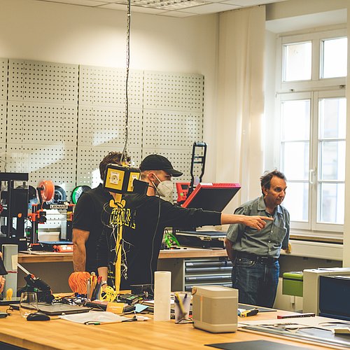 Nach der Vorstellung des Leitfadens bekamen die Hochschulangehörigen Einblicke in die LEO Labs, die Labore und Werkstätten von LEONARDO, und hatten Gelegenheit, sich über die Angebote des Innovationszentrums zu informieren und sich disziplin- und hochschulübergreifend auszutauschen.
