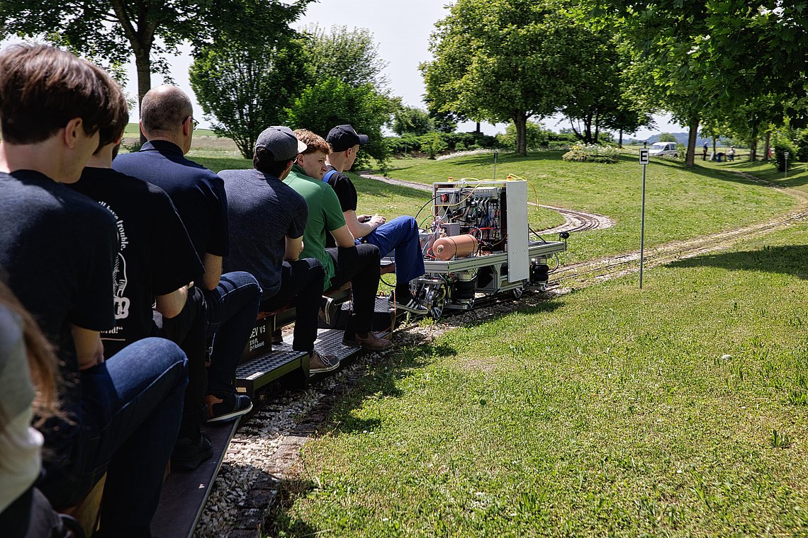 Eine eigene, fahrtüchtige Lok bauen - dieses Ziel haben sich Studierende der TH Nürnberg gesetzt. Unter der Leitung von Prof. Dr.-Ing. Martin Cichon, Leiter des Instituts für Fahrzeugtechnik, nehmen sie an der Railway Challenge (RWC) teil. Bei diesem Wettbewerb treten Teams aus bis zu 15 Mitgliedern an, die eine Lok im Maßstab 1:5,5 entwickeln und sich unter anderem in den Bereichen Fahrkomfort, automatische Zielbremsung oder Konstruktion messen.