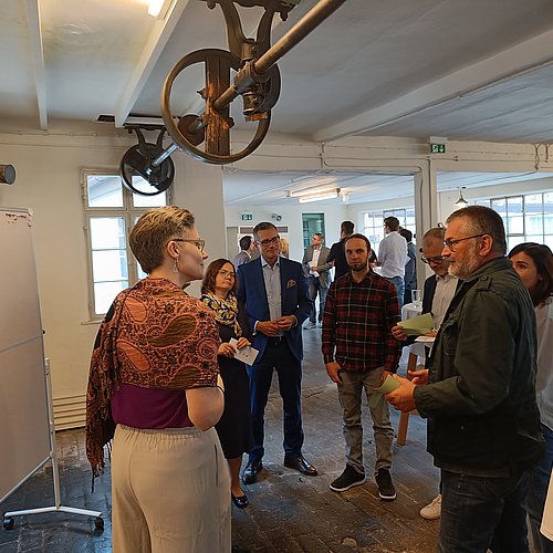 Foto: Im Industriemuseum Lauf haben sich Forschende und Vertreterinnen und Vertreter aus Politik und Wirtschaft darüber abgestimmt, welche Transferthemen im Landkreis Nürnberger Land nützlich sein könnten.