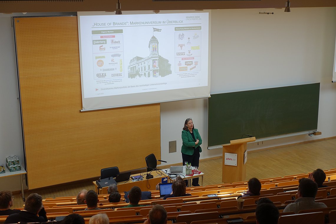 Dr. Hubertine Underberg-Ruder sprach zum Thema „Vision, Kultur & Markenführung im Familienunternehmen“. Sie berichtete angeregt zu den Entwicklungen im Unternehmen in den vergangenen Jahren bis in die aktuelle Unternehmensphase. Mit ihr trat 1991 die fünfte Generation in das Familienunternehmen Underberg ein. Dr. Ludwig Ruder, ihr Sohn, trat 2024 als Vertreter der sechsten Familiengeneration ein, und zwar als stellvertretender Vorsitzender des Aufsichtsrats der Hauptgesellschaft, der Semper Idem Underberg AG. Sie ist seit 1991 Präsidentin des Verwaltungsrates der schweizerischen Muttergesellschaft, Underberg AG in Dietlikon in der Schweiz.
