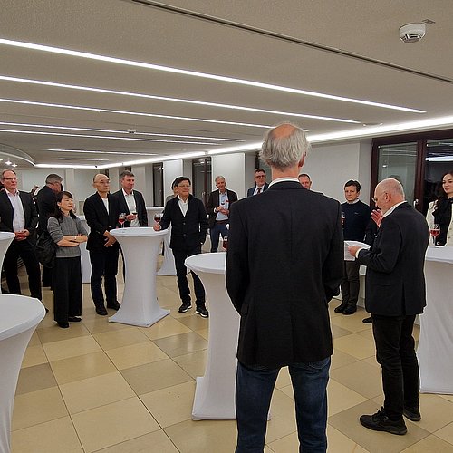 Den Abschluss des ersten Tages bildete der mittlerweile traditionelle Abendempfang der Stadt Nürnberg, bei dem Vertreter*innen des Wirtschafts- und Wissenschaftsreferats die internationalen Gäste willkommen hießen. In den Repräsentationsräumen der Stadt im Heilig-Geist-Spital konnten Gäste, Hochschulvertreter*innen und Partner*innen aus der Kommune am Ufer der Pegnitz Netzwerke für die zukünftige internationale Zusammenarbeit knüpfen