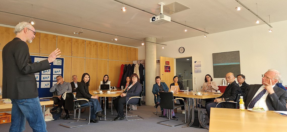 Zum offiziellen Start begrüßten der Vizepräsident der Ohm für die Internationalisierung, Prof. Uwe Mummert, und der Dekan der Fakultät Betriebswirtschaft, Prof. Frank-Ulrich Fricke die Gäste und stellten die Hochschule und Fakultät vor. Nach der Begrüßung durch den Internationalisierungsbeauftragten Prof. Holger Seebens und einem kleinen Mittagessen stellten sich anschließend die Gäste aus China, Finnland, Griechenland, Italien, Japan, Kasachstan, den Niederlanden, Portugal, Südafrika und der Türkei vor, bevor Prof. Kai-Uwe Wellner passend zum aktuellen Leitthema „The End of the World as we know it? Challenges and Chances for International Commerce and Collaboration“ einen Impulsvortrag zum Thema „Current Aspects of International Trade and Business Development” hielt.