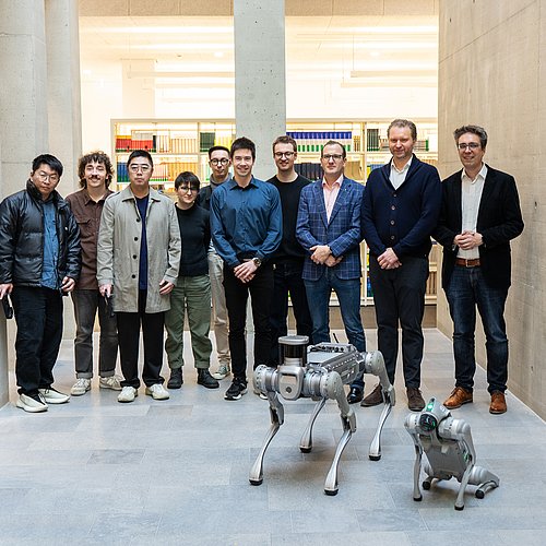 Seit November sind zwei Roboterhunde in der Fakultät Informatik im Einsatz. Sie dürfen sich im Rahmen von Forschungsprojekten zur Autonomen Navigation und zur visuellen Erkennung bewähren. Die hochmodernen vierbeinigen Roboter der Marke Unitree sind ein Geschenk der speedikon FM Group. Im Rahmen der langjährigen Zusammenarbeit zwischen der Firmengruppe und der Hochschule, insbesondere mit dem Forschungslabor „Interactive Media Technology Lab“ an der Fakultät Informatik, übergaben Firmenvertreter die beiden Robotersysteme am 11. November offiziell auf dem Campus der Ohm.