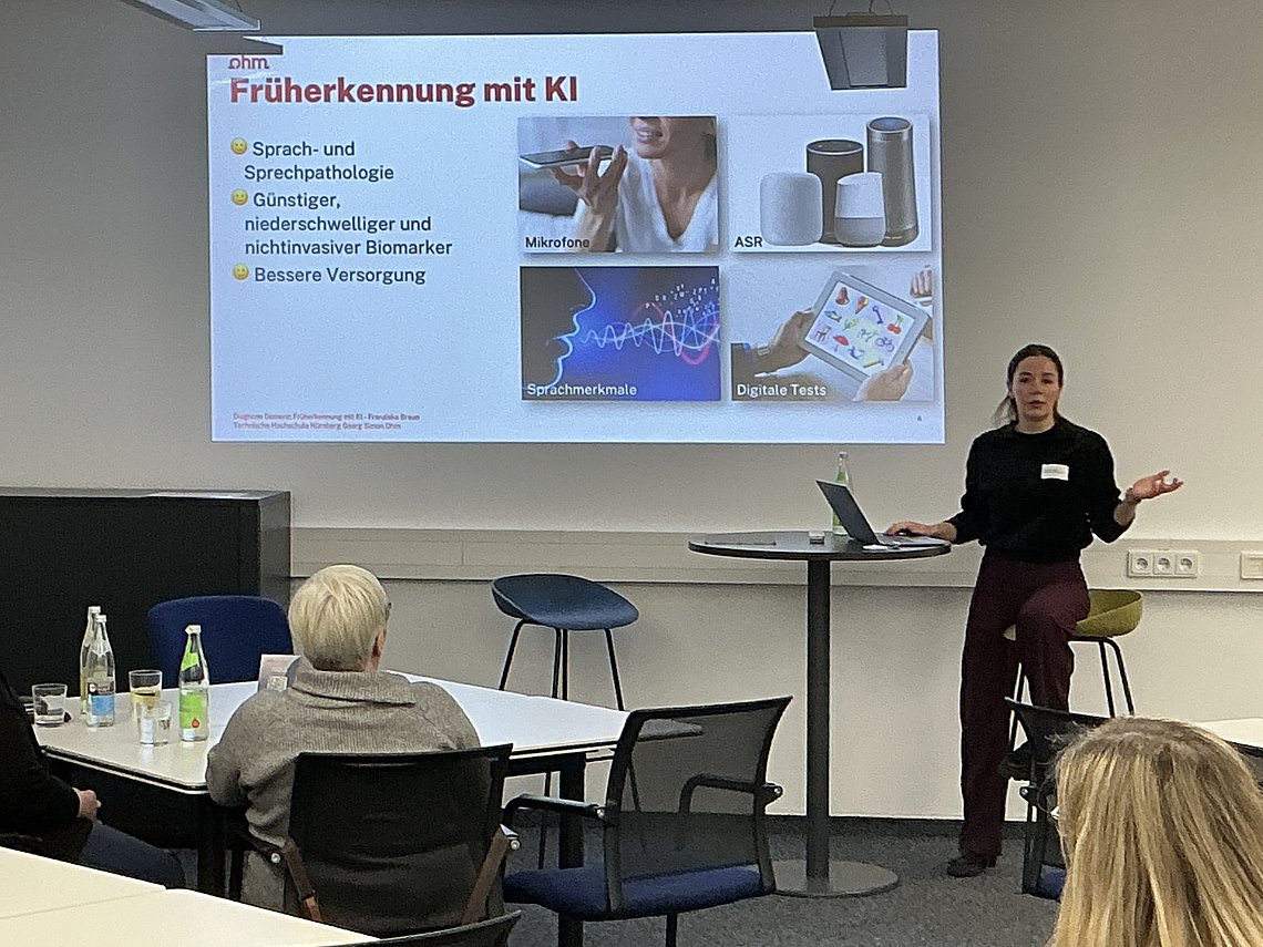 Im Technologietransferzentrum Oberfranken: Digitale Intelligenz (TTZ Digitale Intelligenz) in Kronach wurde ein innovativer Ansatz zur frühzeitigen Erkennung von Demenz im Rahmen des KI-Stammtisches BYTES & BIER vorgestellt. Franziska Braun, Wissenschaftlerin im Zentrum für Künstliche Intelligenz (KIZ), präsentierte den aktuellen Entwicklungsstand einer digitalen Test-App, die medizinisches Fachpersonal künftig deutlich entlasten könnte.