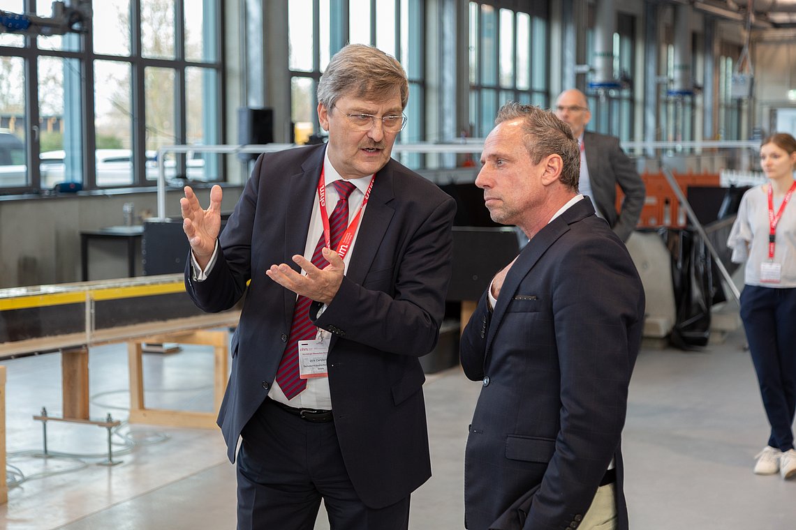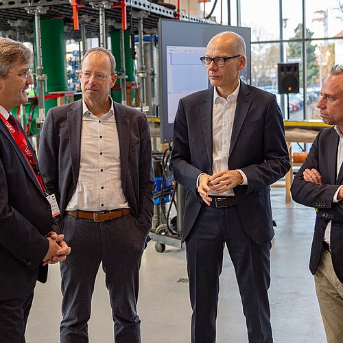 Organisiert wurde das Symposium vom Leiter des Wasserbaulabors an der Ohm, Prof. Dr. Dirk Carstensen. Er präsentierte dem Minister dabei auch ein besonderes Highlight: Das frisch eröffnete Wasserbaulabor im Ohm Innovation Center mit einer Grundfläche von ca. 1.000 Quadratmetern und einem Fassungsvermögen von bis zu 480.000 Litern. Es gehört zu den modernsten seiner Art in Deutschland und bietet die Möglichkeit, die Realität optimal in Modelle zu übertragen.