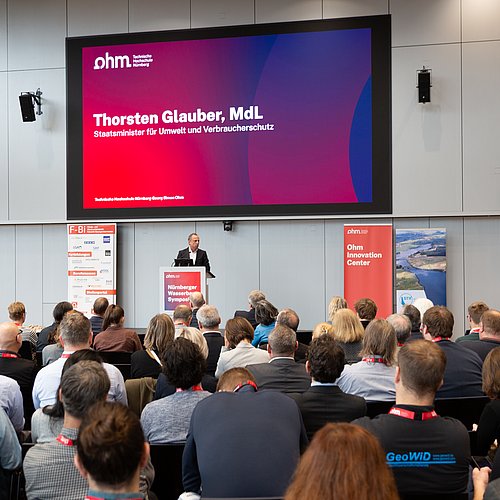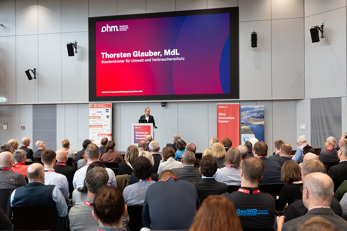Wasserbau im Fokus: Hochwasserereignisse zeigen immer wieder, welche Bedeutung Talsperren, Hochwasserrückhaltebecken oder Deichen zukommt. Vor diesem Hintergrund fand am Donnerstag im Ohm Innovation Center das Nürnberger Wasserbau-Symposium statt. Zu Gast: der Bayerische Staatsminister für Umwelt und Verbraucherschutz, Thorsten Glauber.