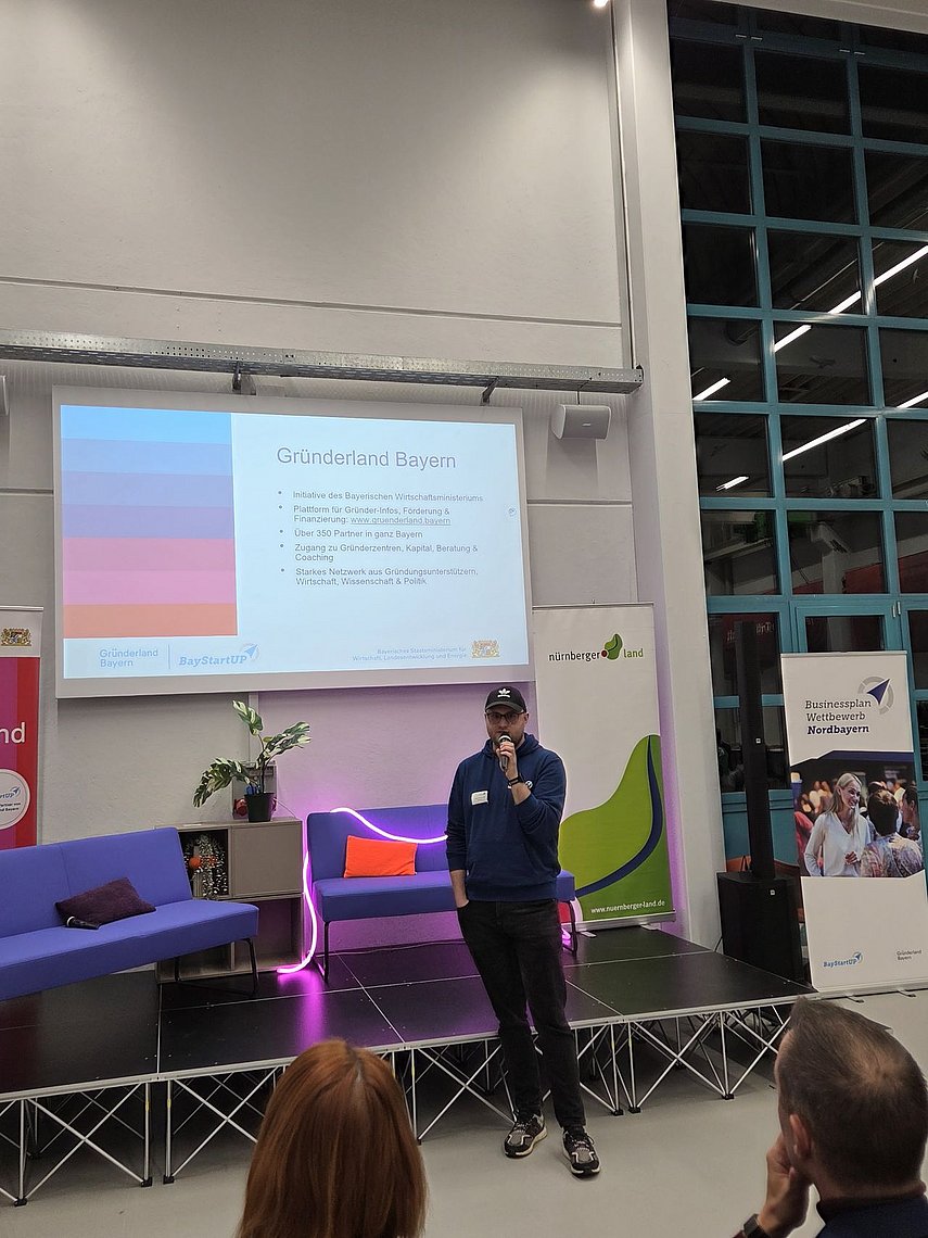 Teams aus dem gesamten Nürnberger Land, teilweise sogar aus München, nutzten die Bühne im TTZ, um ihre Geschäftskonzepte vorzustellen. Mit dabei waren unter anderem Creo, ComplementalAI, Kothon Tech, Helpsta.io, strait.earth, Eberlein Health, CoachRabbit, NEOVYNT, SportVision (FOS Lauf), OXIENSIS, Studypilot und Masterversity.