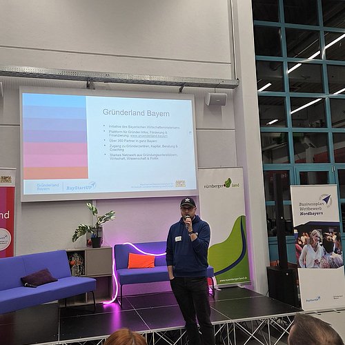 Zum Auftakt begrüßte Frank Richartz von der Wirtschaftsförderung Nürnberger Land die Teilnehmenden und unterstrich die Bedeutung von Gründungen für die wirtschaftliche Zukunft der Region. Auch Landrat Armin Kroder ließ es sich nicht nehmen, spontan vorbeizuschauen und den Gründergeist vor Ort zu würdigen.