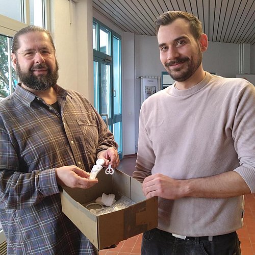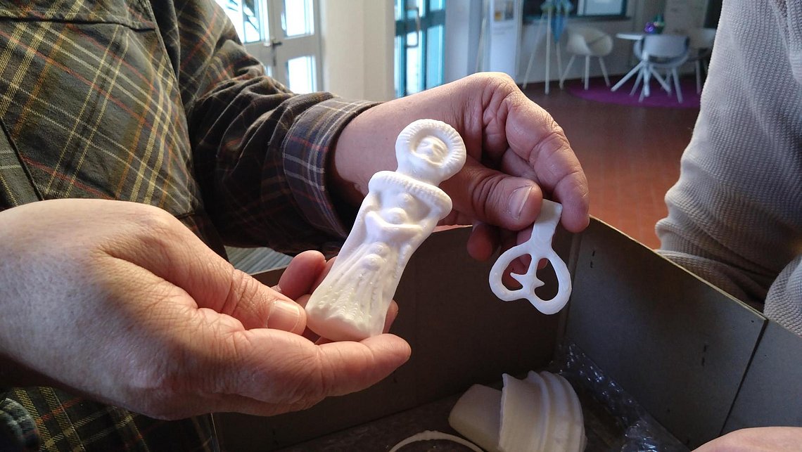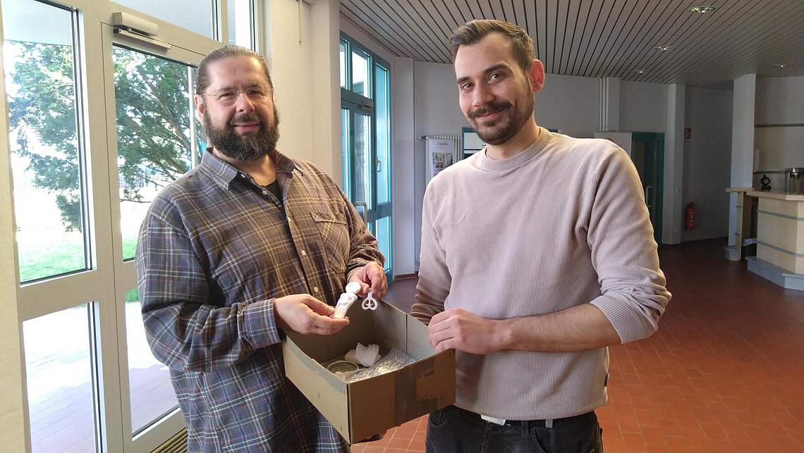 Die Qualität der Reproduktionen überzeugte das Industriemuseum so sehr, dass es dem TTZ im Anschluss sechs weitere Objekte zur Reproduktion übergab. Die fertigen Nachdrucke wurden von TTZ‑Mitarbeiter Tobias Gunzelmann an Lars Hochreuther vom Industriemuseum übergeben.