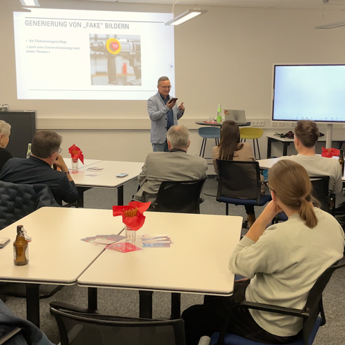 Die Teilnehmenden konnten nachvollziehen, wie immersives Lernen Hürden abbaut und neue Formen der beruflichen Ausbildung ermöglicht. Dieser KI‑Stammtisch zeigte einmal mehr, wie dynamisch und praxisnah KI‑Entwicklungen in der Bildung bereits genutzt werden – und wie groß das Potenzial für Schulen, Ausbildungsbetriebe und Weiterbildung ist.