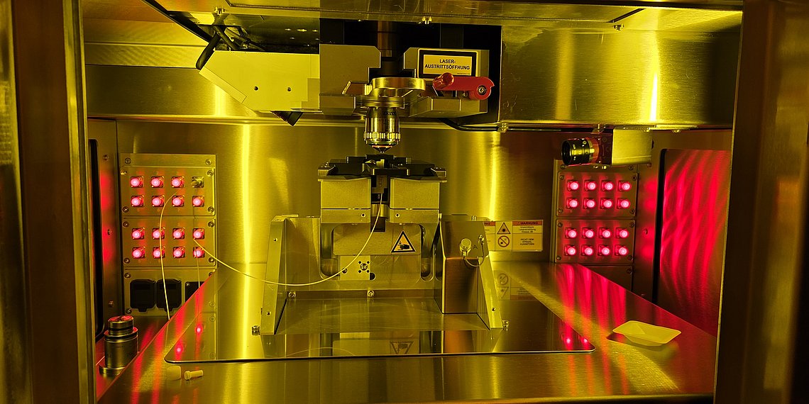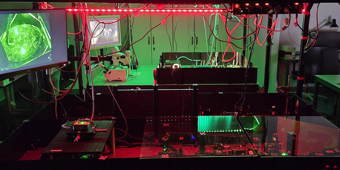 The Light Conversion Pharos femtosecond laser allows for nonlinear light-matter interaction which opens the way for sophisticated microstruturing of materials. One Example is the implementation of fiber bragg gratings inside of optical fibers