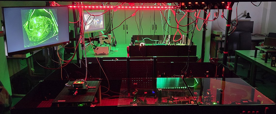 The group offers student projects aligned with its research activities and the development of experimental teaching platforms. These include laser and pulsed spectroscopy of diamond-based emitters, entangled photon generation, and quantum cryptography. The setups are integrated into hands-on courses in quantum optics.