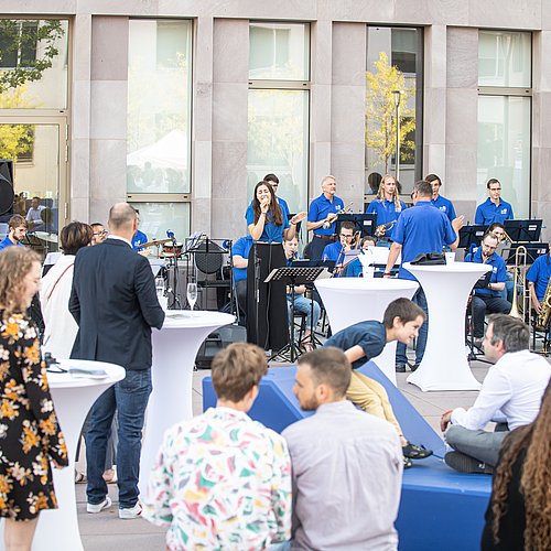 Bildinformation „PM 36_TH Nürnberg_Förderpreise Bigband.jpg“: Musikalisch wurde die Verleihung der Förderpreise von der neu gegründeten OHM Big Band begleitet. (Foto: Melanie Scheller)