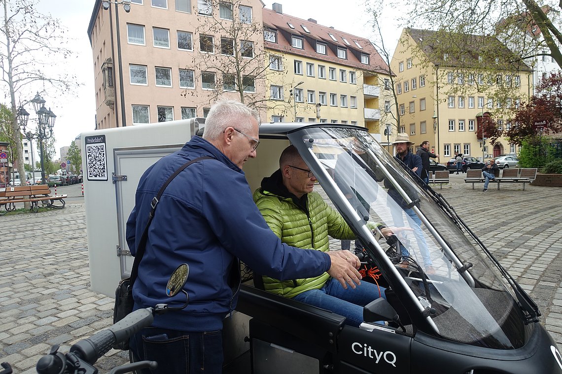 In Nürnberg sind Paketdienstleister bei der Zustellung zunehmend auf mehrspurigen Pedelec-Lastenrädern anzutreffen. Anlässlich des 200jährigen Jubiläums der Technischen Hochschule Nürnberg Georg-Simon-Ohm, seit vielen Jahren Forschungs-HotSpot für Lastenrad-Logistik, gab es in der Innenstadt Gelegenheit, diese Fahrzeuge einmal selbst auszuprobieren und sich darüber zu informieren.