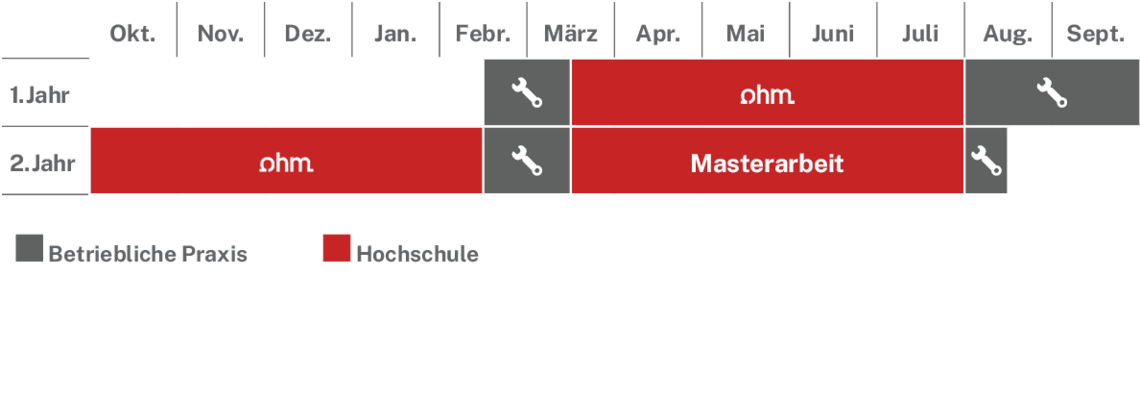 Betriebliche Praxis: 8 Monate + betriebliche Praxis in den Theoriemonaten + Masterarbeit