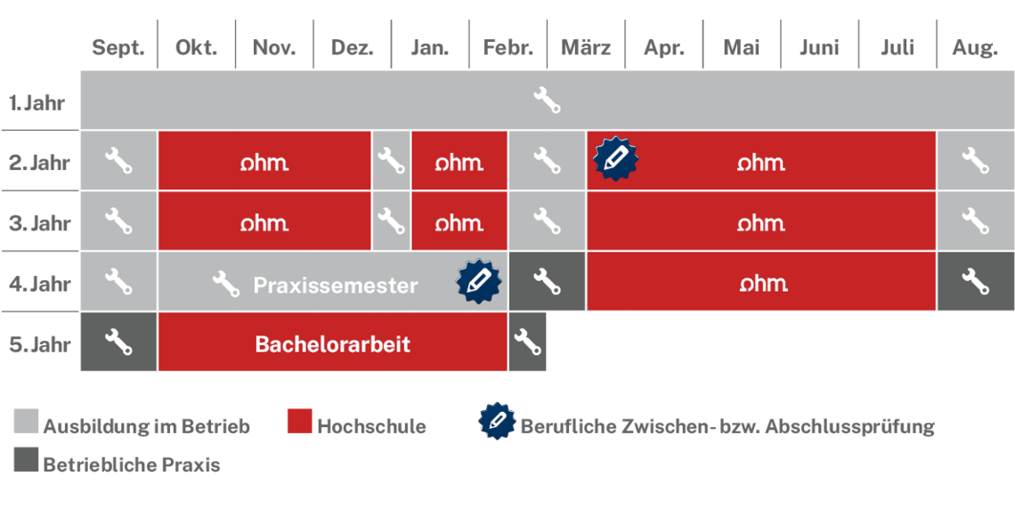 Betriebliche Ausbildung: 24,5 Monate inkl. Praxissemester
