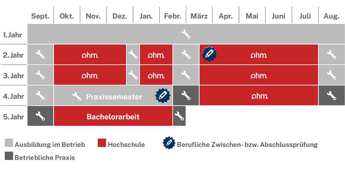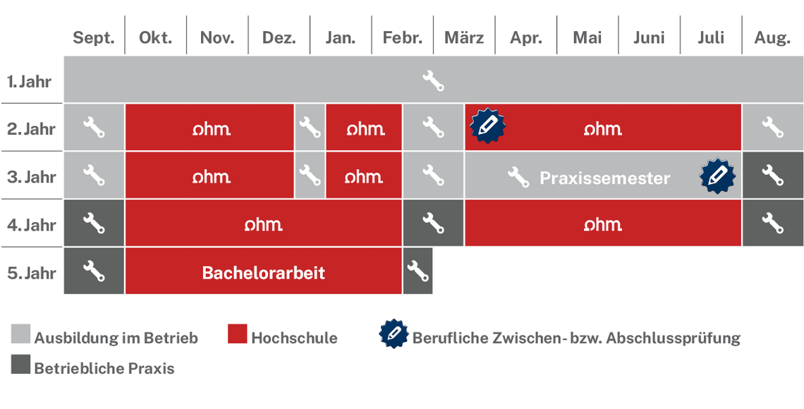 Betriebliche Ausbildung: 24,5 Monate inkl. Praxissemester