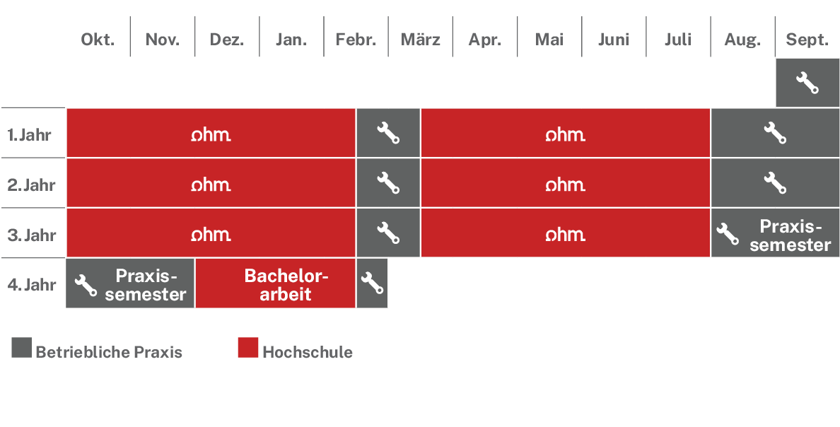 Betriebliche Praxis: 12,5 Monate inkl. Praxissemester zzgl. Bachelorarbeit