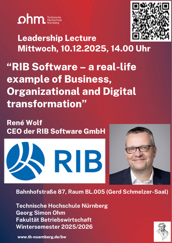 Die Leadership Lectures sind semesterwiederkehrende Gastvorlesungen in der gleichnamigen Veranstaltungsreihe der Fakultät Betriebswirtschaft an der Ohm. Als Gäste werden Führungspersönlichkeiten von internationalen Unternehmen mit innovativen Themenbeiträgen willkommen geheißen.